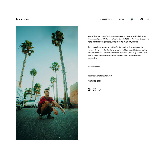 Yes. You can easily link your portfolio to your social media accounts and external resources. These links can be displayed directly on your Home and About pages, ensuring your audience can find your work wherever it lives.