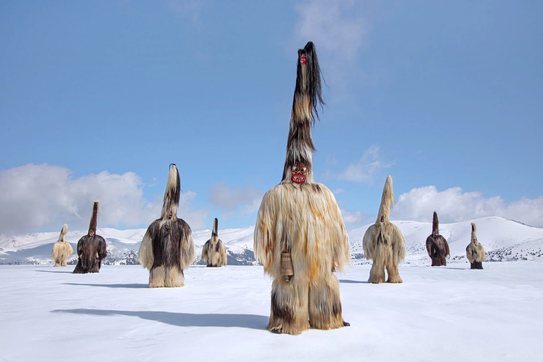 “The intriguing thing about this image is the way that the figures in the ceremonial dress and masks are juxtaposed with the young boy gazing up at them wearing a modern shirt in the same color palette. The light, the composition, and the framing of the figures between the windows direct the eye towards the main focal point and then the small boy acts as a counterpoint. It is a gentle but vivid contrast between traditionalism and modernity.” — Steve McCurry